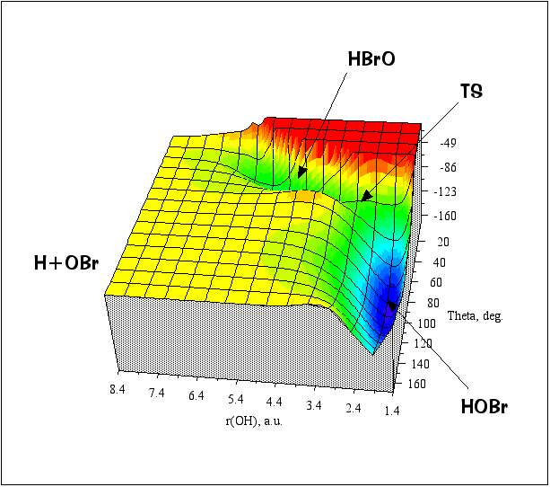 Surface plot (energy in kcal/mol relative to a zero of energy at the H+O+Br asymptote):