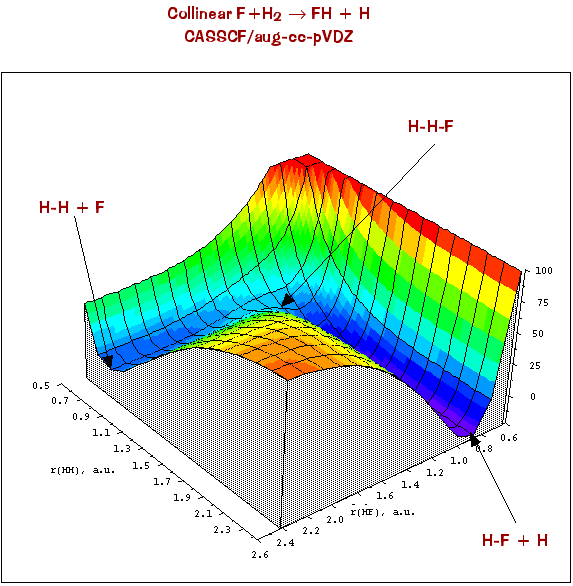 Surface plot (in kcal/mol with a zero of energy at the F+H2 reactants):